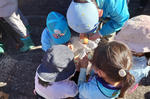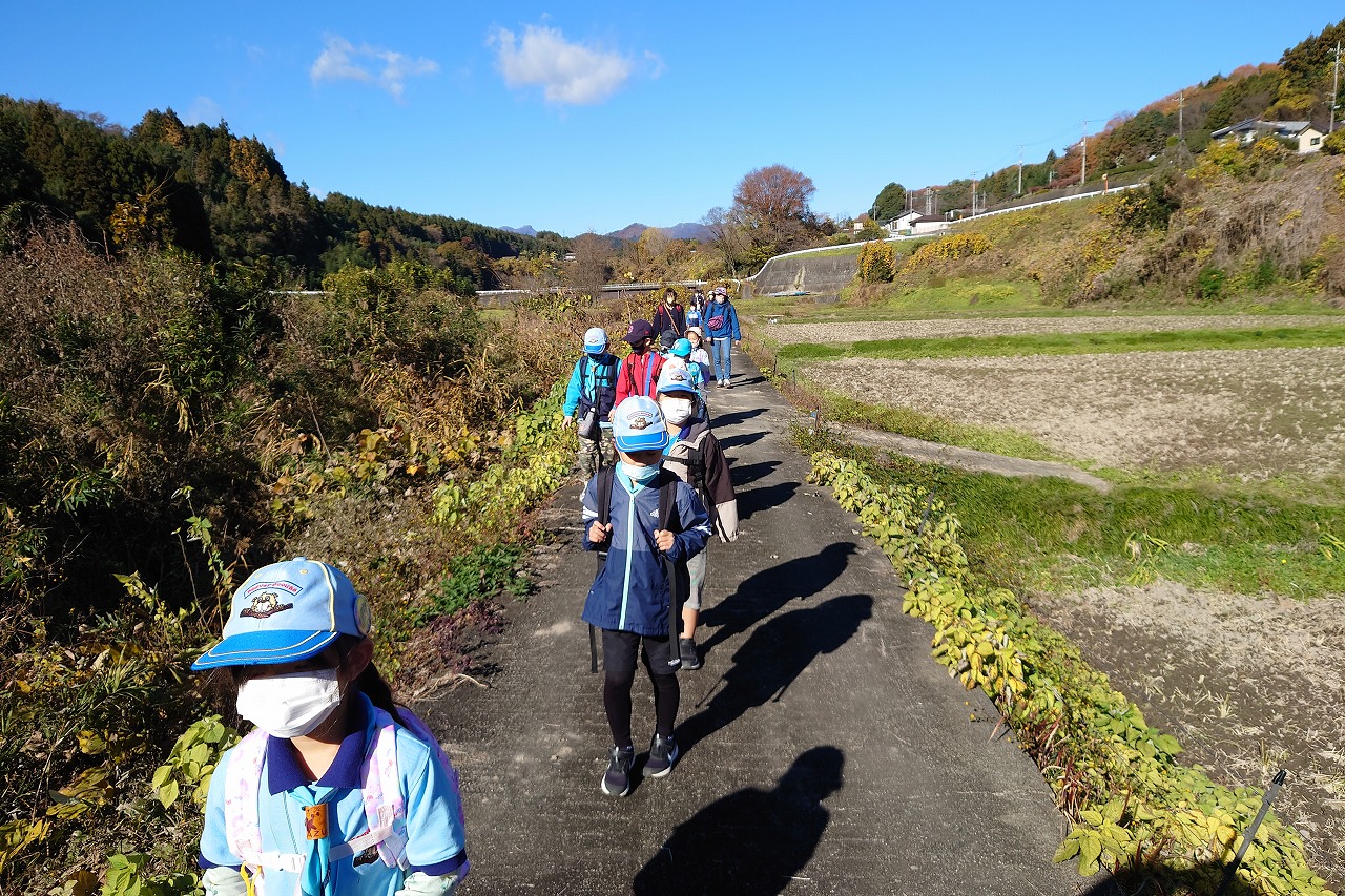 今回は、集合場所から会場の畑までは追跡ハイキングで移動しました。