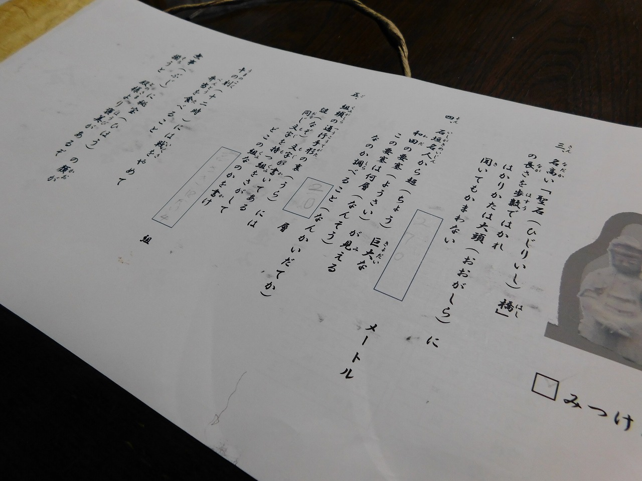 道中では、陣のゲーム以外にも「巻物」に書かれた課題に挑戦しました。
