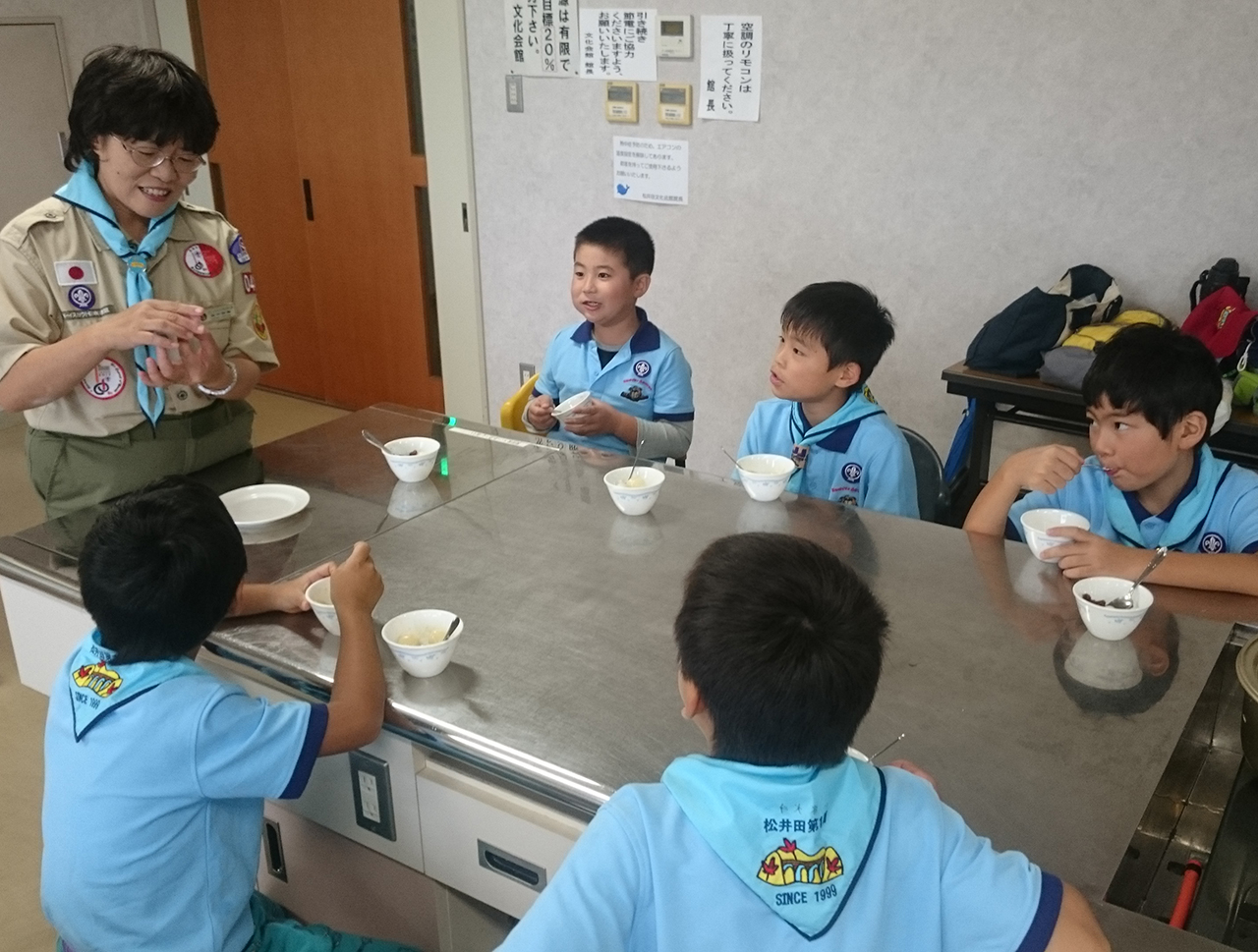 あいにくの天気だったので外では活動できませんでしたが、おいしく楽しい集会ができました。