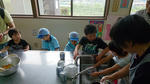 おっかなびっくり包丁を使い、フルーツポンチを作りました。