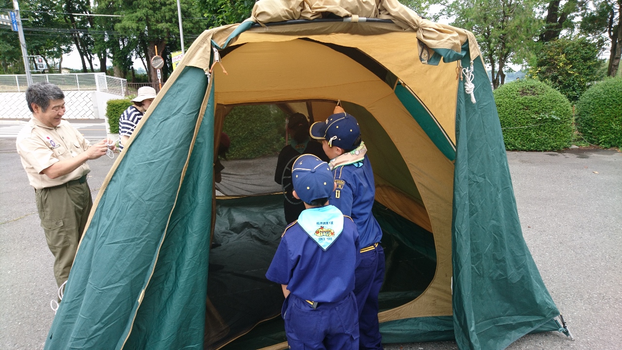 カブ隊はテントを立てる練習です。
