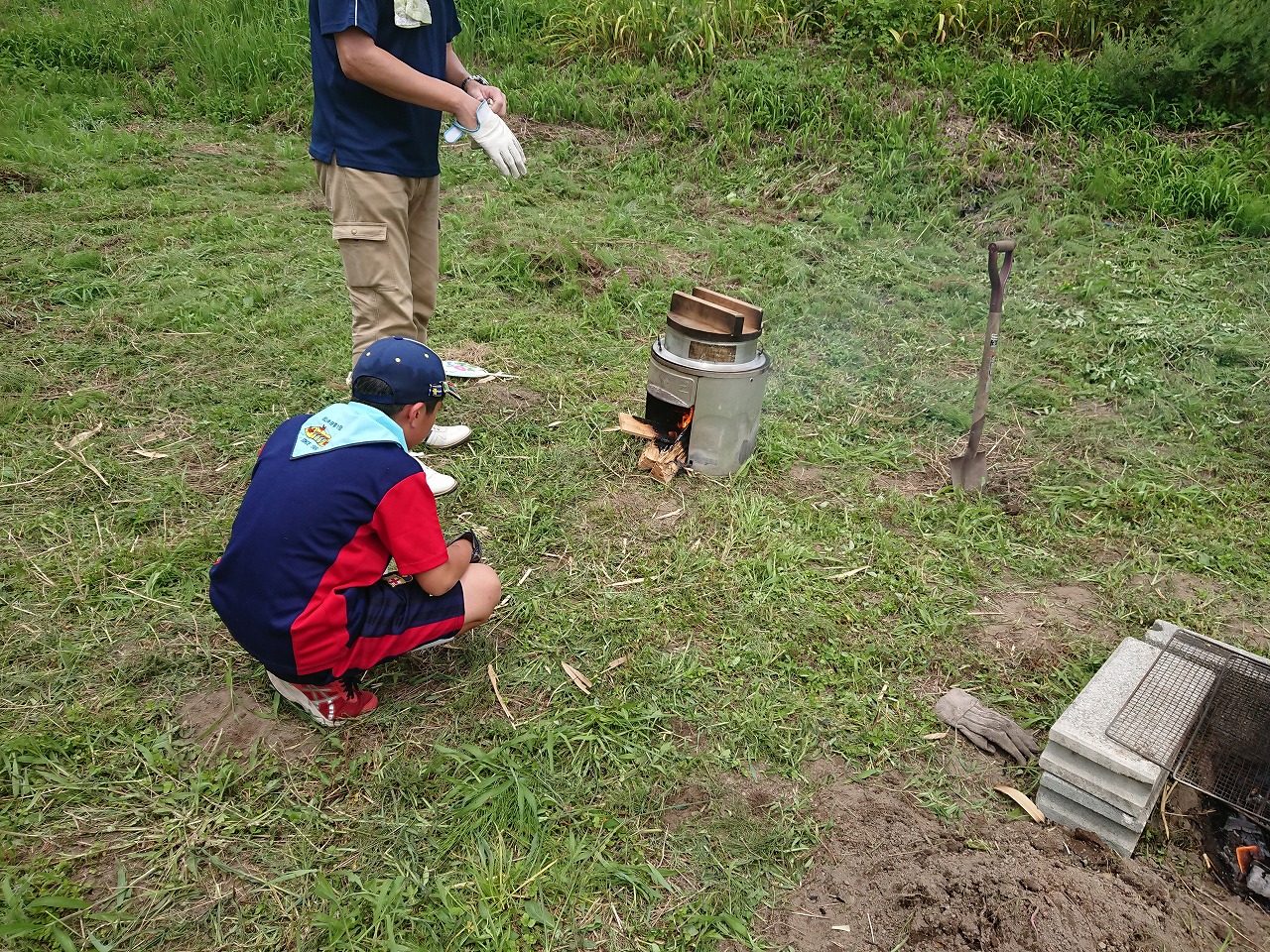 2018.07.22 団キャンプ準備集会2 隊行事 2018.07.252025.10.15 隊行事 ビーバー隊(小1・2)カブ隊(小3〜5)ボーイ隊(小6〜中学生) 前回に引き続き、今回も団キャンプの準備集会を行いました。 キャンプファイヤー向けの歌やスタンツをボーイ隊長から教えてもらいました。 ナタの薪割りはカブスカウトには危ないので見学です。 今回のメニューは豚丼。 前回はご飯とレトルトだけでしたが、今回は豚丼があるので、やることもかまどの数も多く大変です。 今日はうまく炊けたようです。 (文・カブ隊長)