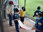 2021.07.04 久々の基本動作訓練 隊行事 2021.07.052025.10.15 隊行事 カブ隊(小3〜5) 新型コロナウイルスの感染拡大に伴い、5・6月の活動は休止しました。 警戒度が下がったため活動再開となり、今回は2ヶ月ぶりの集会ができました。 上進式後、ハイキング以外は活動ができなかったため、まずは基本動作から始めることにしました。 気をつけ・休め・敬礼の仕方、国旗の取り扱い方を勉強しました。 勉強で頭を使った後は、ビーズを使って国旗柄のバッジ作りをしました。 (文・カブ隊長)