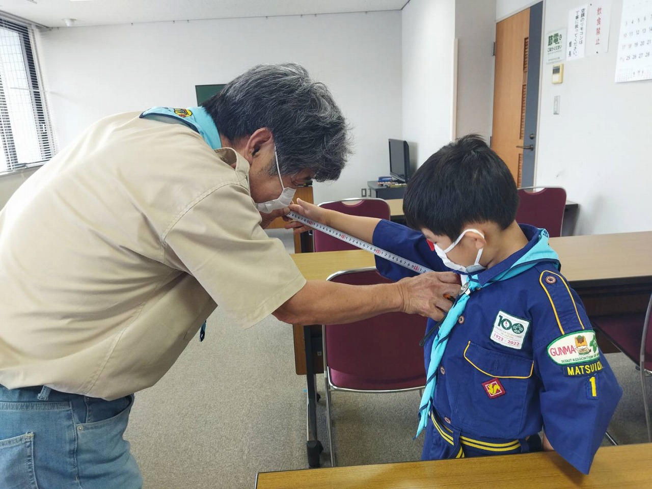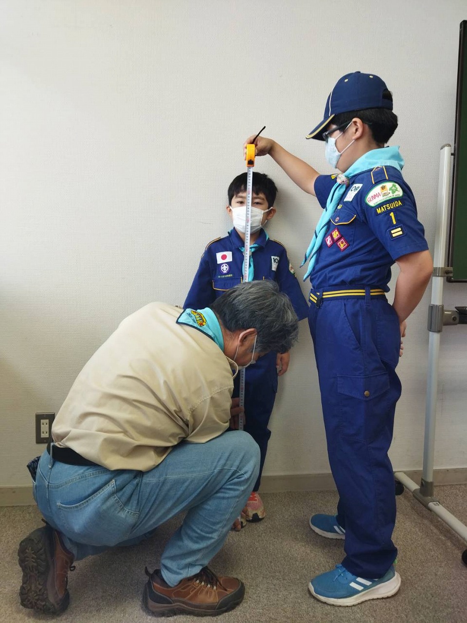 2022.07.10 体を使って計ろう・割り箸鉄砲づくり 隊行事 2022.07.132025.10.10 隊行事 ビーバー隊(小1・2)カブ隊(小3〜5) カブ隊は「計測」に挑戦する集会を行いました。 身長や腕の長さ、1歩の長さなどメンバーで協力しておたがいに計りました。 1歩の長さは10m程度の距離を何度か歩き、その歩数の平均を計算するのですが、カブスカウト(小3~5)には少し難しかったようです。 文化会館の芝生を使って、歩測で誰が一番50mを正確に測れるか競争したところ、5年生の組長さんが優勝でした。 ビーバー隊は文化会館の工作室で割り箸鉄砲づくりをしました。 できた割り箸鉄砲で的当て勝負! (文・カブ隊長)