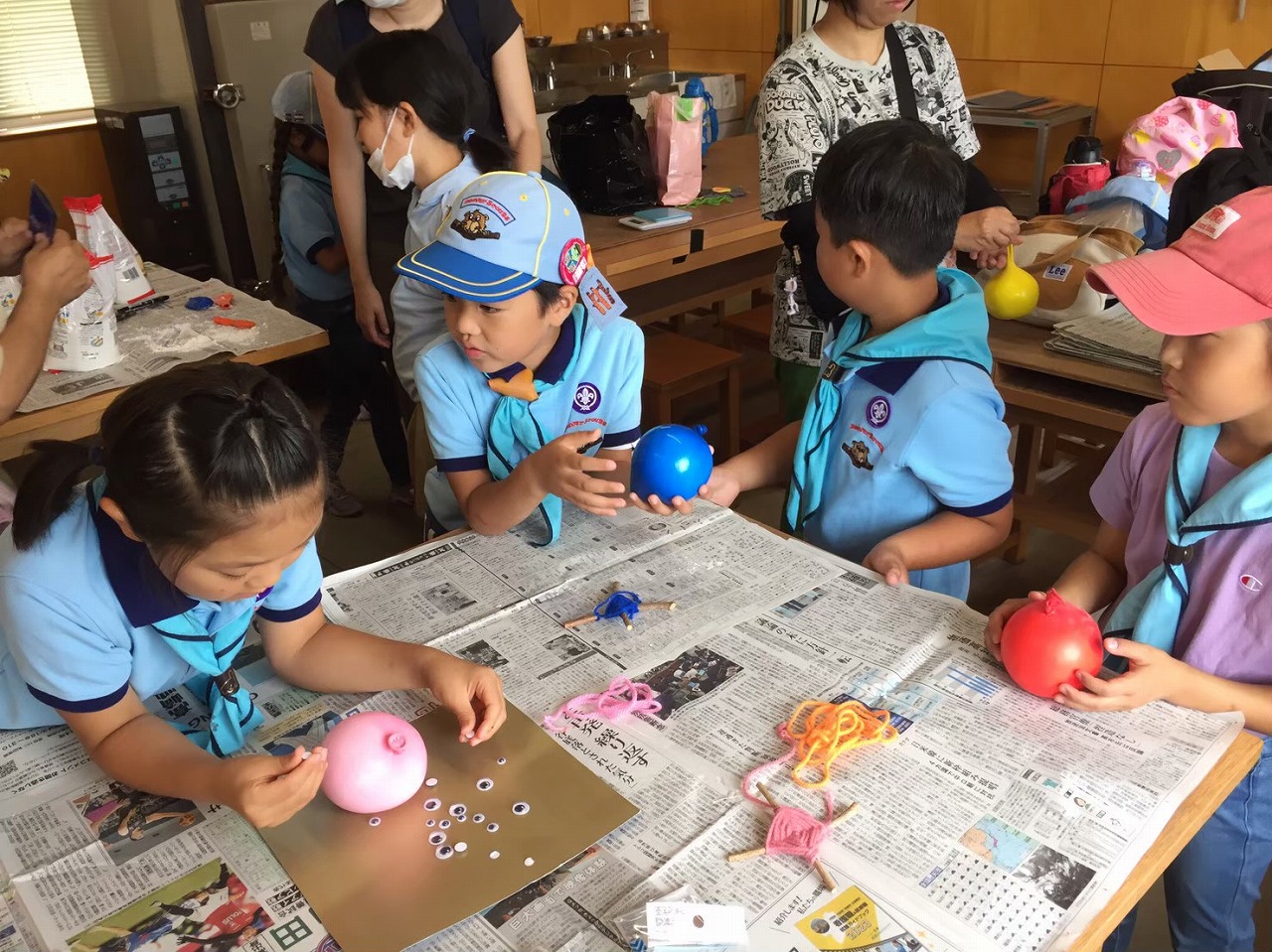 2023.07.09 コムギン作り&キャンプ準備 隊行事 2023.07.102025.10.09 隊行事 ビーバー隊(小1・2)カブ隊(小3〜5) ビーバー隊は、安中市学習の森で「コムギン」づくりをしました。 コムギンは小麦粉を風船の中に詰めた手作りおもちゃです。 風船を膨らませて小麦粉を詰めるのがなかなか難しい。 目玉や頭の飾りをつけて完成です。 にぎると不思議な感触です。 カブ隊は、夏の団キャンプに向けてテント立ての練習をしました。 前回1度立てていますが、何度も練習です。 テントを立ててたたんだら、ロープを使ったゲームに挑戦したりコムギンづくりをしたりしました。 (文・カブ隊長)