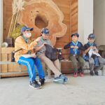 ビーバーは保護者と一緒にノコギリを使って切り出します。
